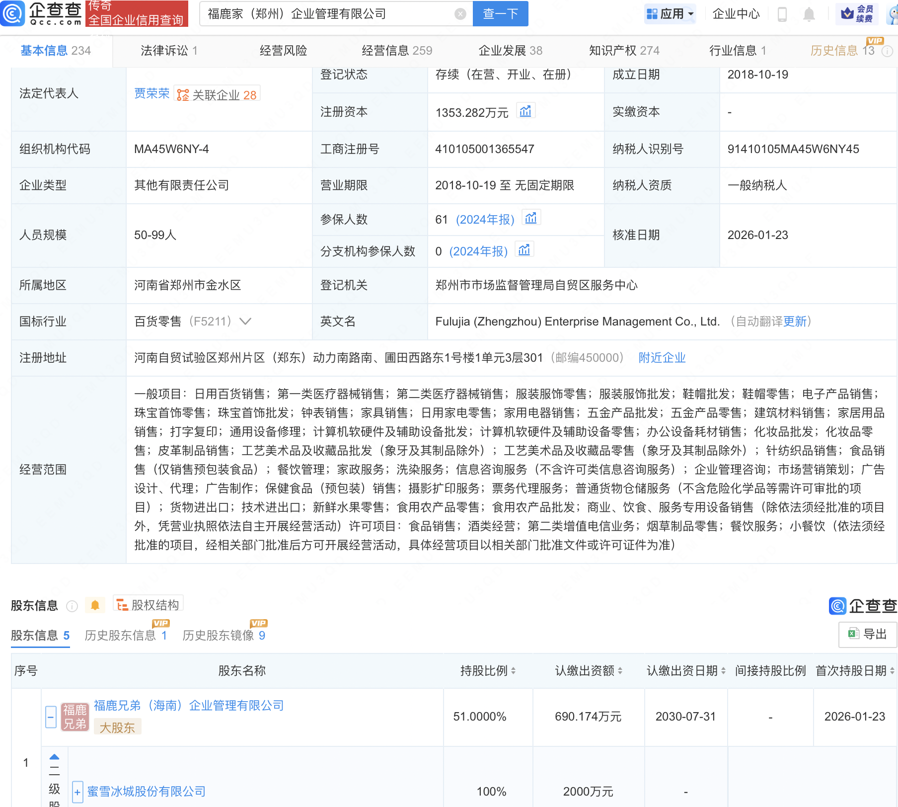 近日,福鹿家(郑州)企业管理有限公司发生工商变更,新增蜜雪集团(02097.HK)全资子公司福鹿兄弟(海南)企业管理有限公司为股东,持股51%,同时注册资本增至约1353.3万人民币。企查查信息显示,该公司成立于2018年,法定代表人为贾荣荣,经营范围包括食品销售;酒类经营;第二类增值电信业务;烟草制品零售等。据其官网,该公司为鲜啤福鹿家关联公司,其拥有精酿鲜啤生产工厂。