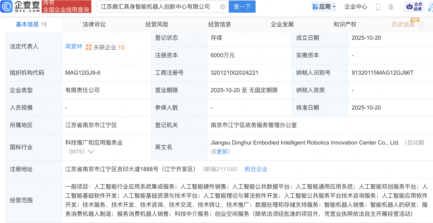 近日华夏理财,江苏鼎汇具身智能机器人创新中心有限公司成立,注册资本6000万元,经营范围包含:人工智能行业应用系统集成服务;人工智能硬件销售;智能机器人销售;智能机器人的研发等。企查查股权穿透显示,该公司由埃斯顿(002747)、亨通光电(600487)全资子公司江苏亨通线缆科技有限公司、安培龙(301413)、绿的谐波(688017)、泉峰汽车(603982)等共同持股。